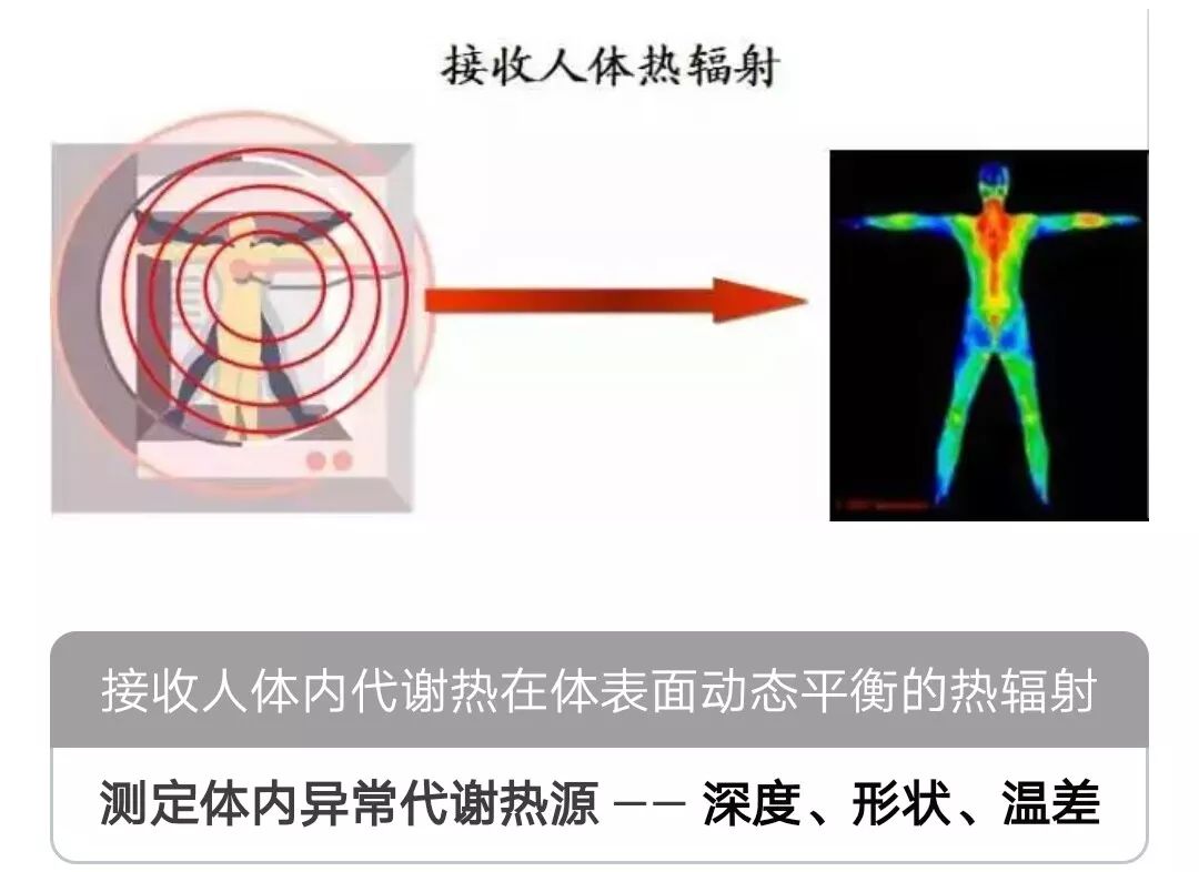 利用遙感技術將人體發(fā)出的紅外線信號攝入并轉(zhuǎn)化為電信號,經(jīng)AD轉(zhuǎn)換為數(shù)字信號,經(jīng)計算機以偽彩色顯示溫度分布場,由專用軟件處理,用于臨床分析診斷。