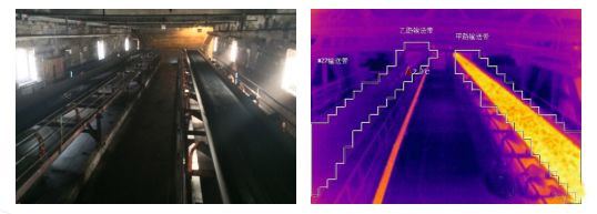 現(xiàn)行方案主要為擋煤墻處掛有感溫電纜,但只能監(jiān)控最外側(cè)和墻體接觸的煤炭,99%以上的煤堆是監(jiān)測盲區(qū)。采用插拔式熱電偶方式,理論上2個(gè)煤倉要布設(shè)800根以上的熱電偶,安裝復(fù)雜,無線組網(wǎng)也不可靠,而煤炭是不斷運(yùn)進(jìn)運(yùn)出的,需要有人不斷去插拔熱電偶,維護(hù)成本不可承受,不具備實(shí)用價(jià)值;感溫電纜主要工作方式是通過感溫電纜上的溫度感應(yīng)芯片監(jiān)測芯片附近的溫度,只能對監(jiān)測的點(diǎn)附近溫度變化有監(jiān)測效果,對整個(gè)傳送帶,很容易漏報(bào)。視屏監(jiān)控對煤炭陰燃或溫度異常不能很好的發(fā)現(xiàn),只能在煤炭發(fā)生燃燒,才可以判斷,屬于災(zāi)后監(jiān)測,不能起到災(zāi)前預(yù)警的作用。