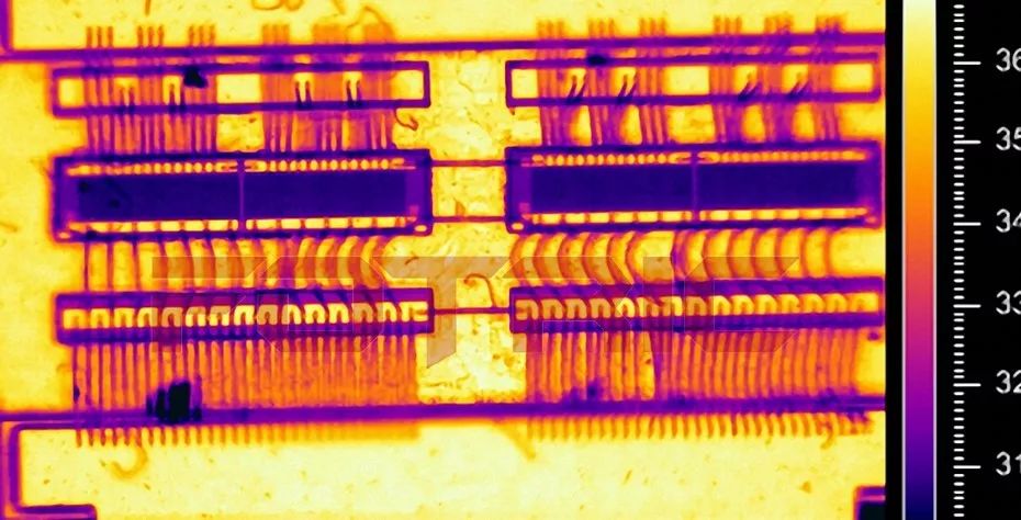 芯片小至0.5毫米×1.0毫米,熱像儀能測溫嗎?當(dāng)然可以,紅外熱像儀支持20微米微距鏡,可直接對未封裝前細(xì)小芯片進(jìn)行微米級的微觀溫度成像檢測,發(fā)現(xiàn)過熱連接線和連接點(diǎn),改進(jìn)芯片設(shè)計。