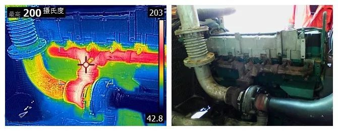 當(dāng)然,它的用途遠(yuǎn)遠(yuǎn)不止這些,對(duì)于鉆井使用的12缸或16缸柴油機(jī)來(lái)說(shuō),用KT384紅外熱像儀來(lái)判斷各缸的工作狀況,以及排氣溫度狀況,就顯得非常方便了。對(duì)于并車(chē)使用的柴油機(jī)組,還可以清晰的反應(yīng)出各機(jī)組的帶載情況。