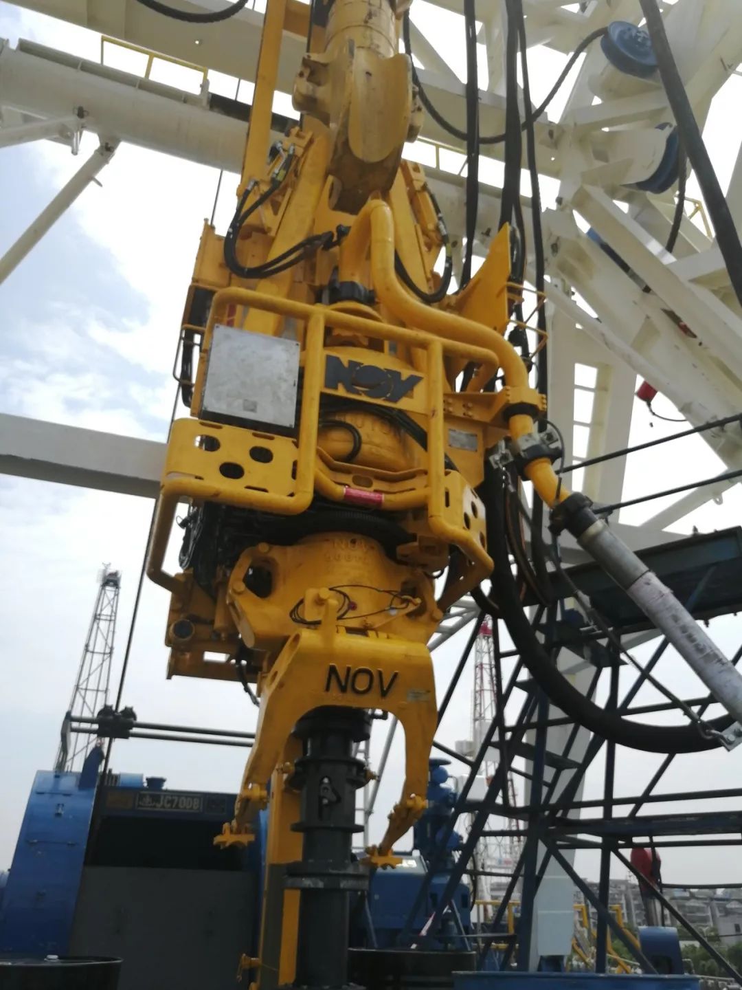 “頂驅(qū)”是頂部驅(qū)動(dòng)設(shè)備的簡(jiǎn)稱(chēng),其價(jià)值為1千多萬(wàn)人民幣,集成了機(jī)械、電氣、液壓、高壓循環(huán)等設(shè)備,泥漿通道承壓高于50MPa,底部承載約400噸,電功率400KW。“頂驅(qū)”是鉆井過(guò)程設(shè)備中,較貴重的設(shè)備。因其懸掛在游車(chē)上,上下移動(dòng),高點(diǎn)距離鉆臺(tái)40多米,低點(diǎn)約為7米。在日常巡檢中,觀察非常不方便。日常巡檢中,沒(méi)有足夠的時(shí)間進(jìn)行檢查,如果停下設(shè)備進(jìn)行檢查,將會(huì)造成很大的損失。利用KT384紅外熱像儀,站在鉆臺(tái)上即可清晰的觀察出各部件的運(yùn)行狀態(tài)及溫度參數(shù),給日常巡檢帶來(lái)了極大的方便。