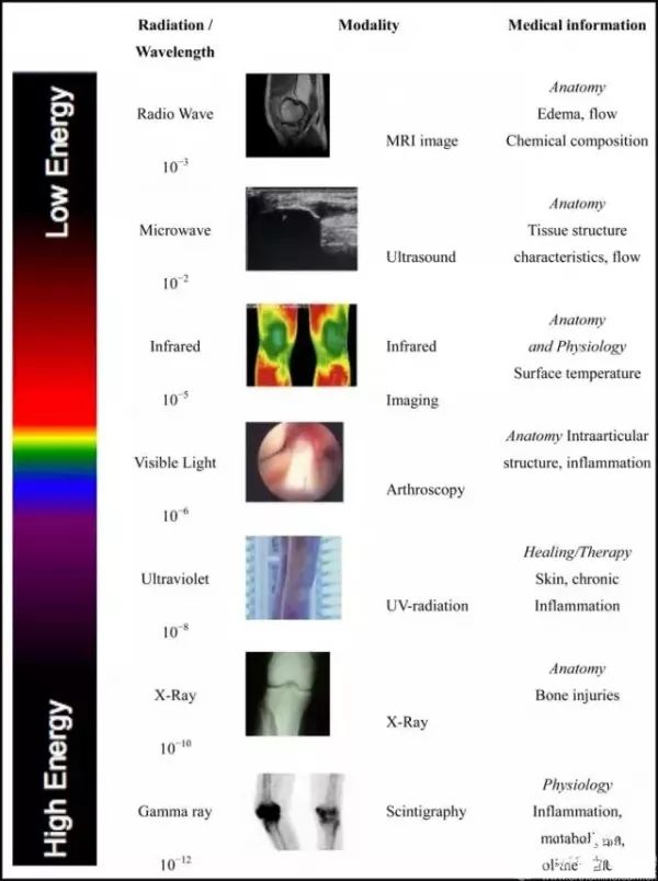 我們之所以能夠俯察山川草木,仰望日月星辰,是因?yàn)檫@些東西,或者說這些物質(zhì),在最根本的層面上,能夠跟光,或者說電磁波互動——它們能夠被光照亮,或者能夠發(fā)出光亮。而醫(yī)學(xué)影像的本質(zhì),也是人體不同解剖結(jié)構(gòu)在與不同電磁波相互作用下的表現(xiàn)[1]。