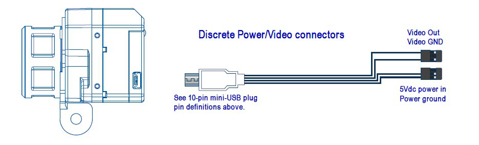 將GoPro-兼容電纜插入10-針mini-USB接頭,為熱像儀提供5V直流穩(wěn)壓電源,將模擬視頻發(fā)送到您的視頻發(fā)射機或OSD中,您就可以使用了。